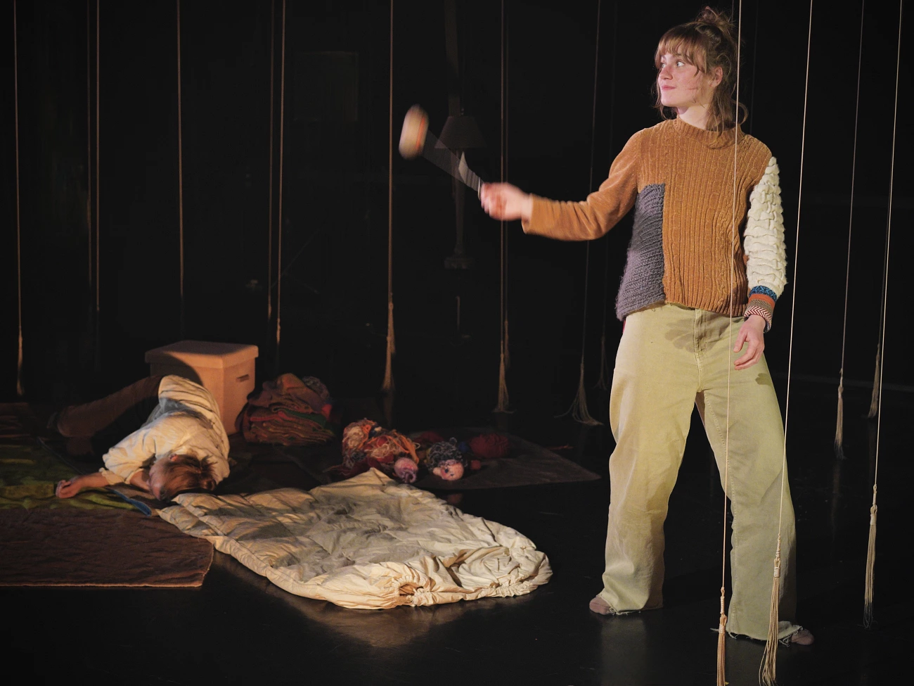 Forte de l’expérience initiée à l’été 2023 avec la lecture en mouvement, Un lacet dans un oeillet (dans le cadre du dispositif DRAC Hauts-de-France, Plaines d’été), L’Embellie décide de prolonger ce travail par une création de ce texte au plateau : Chère écharpe.